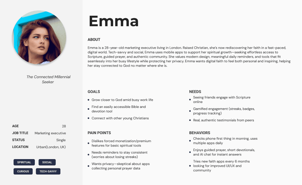 Understanding the people behind the faith. Designing for believers who seek consistency, privacy, and calm in their daily spiritual practice