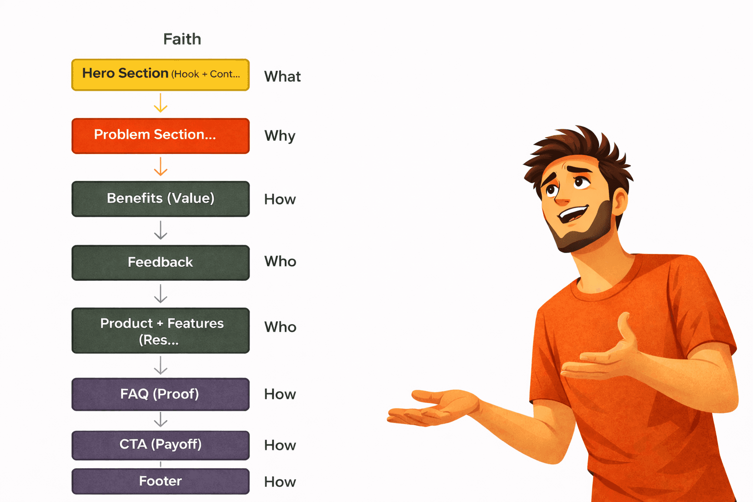 A clear journey from belief to action. Each section is designed to guide users with intention, clarity, and trust